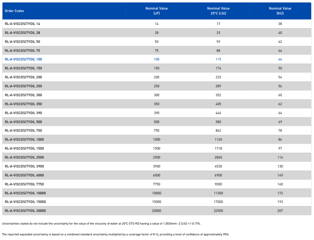 Supplied in 500ml bottles the oils come complete with calibration data on the label in kinematic (cSt) and dynamic viscosity (mPa.s) given at all temperatures. All oils are manufactured in the UK and are supplied with a 2 year shelf life