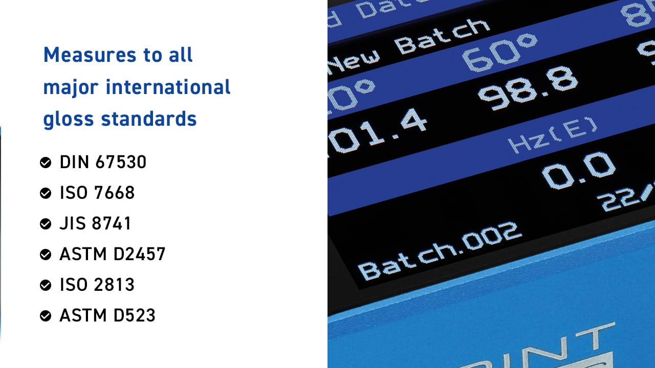 - Compliant to major international standards such as ASTM D523, ISO 2813, ASTM D2457