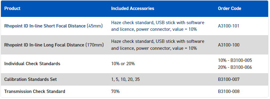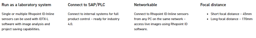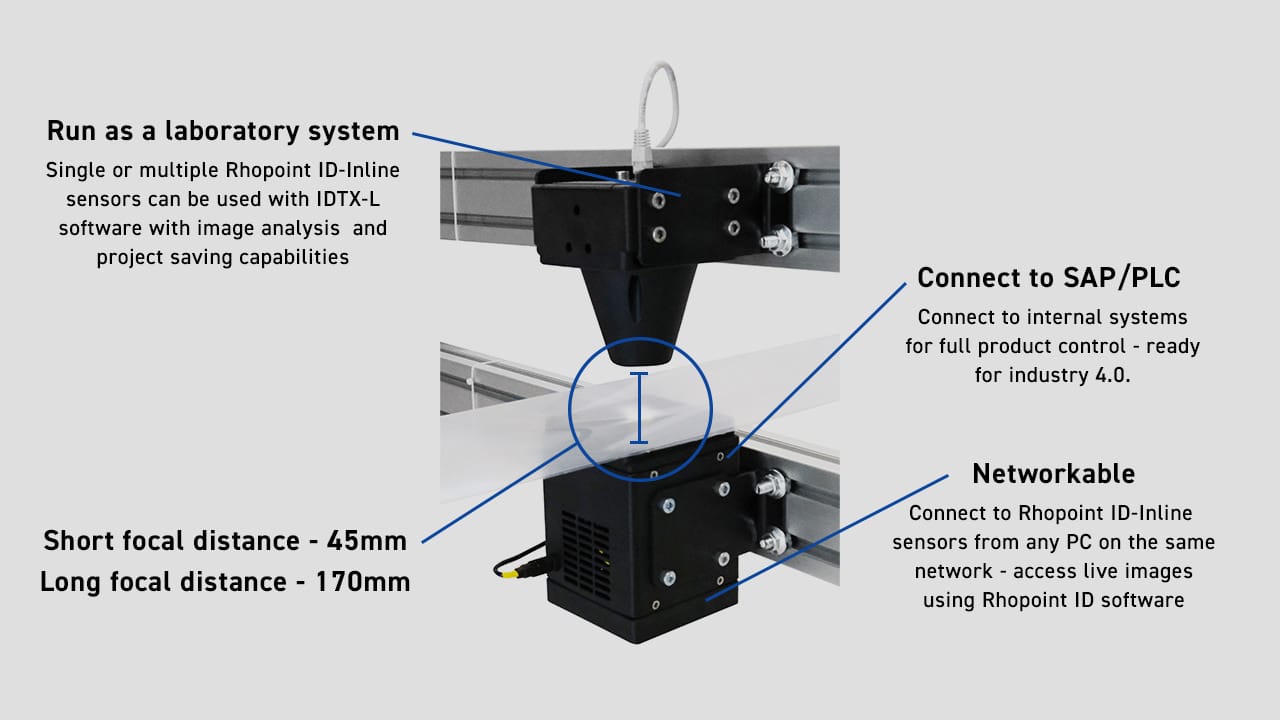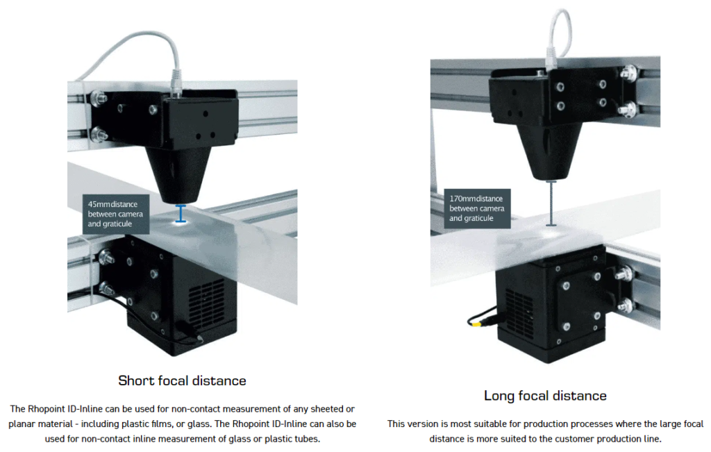 There are two versions of the Rhopoint ID-Inline. A short focal length version which has a separation distance of 45mm between the camera and graticule, or the long focal distance version which has a separation distance of 170mm.