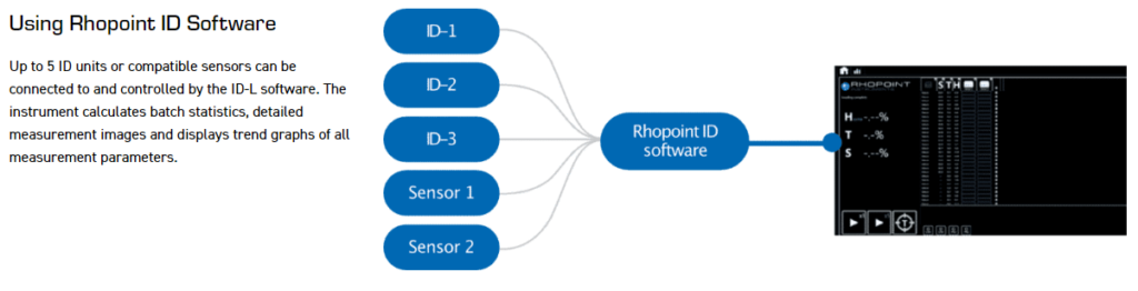 Flexible software allows single or multiple ID sensors to be combined with compatible measurement devices and tabulated in the Rhopoint ID laboratory software.