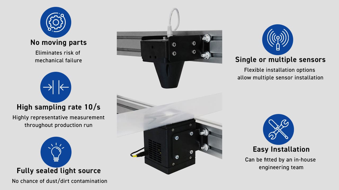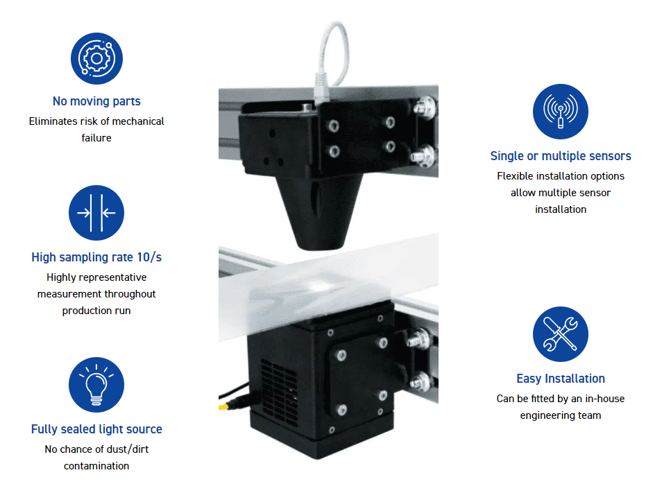 The Rhopoint ID-Inline is a camera-based system which fully quantifies product transparency with parameters that are highly correlated to human perception.