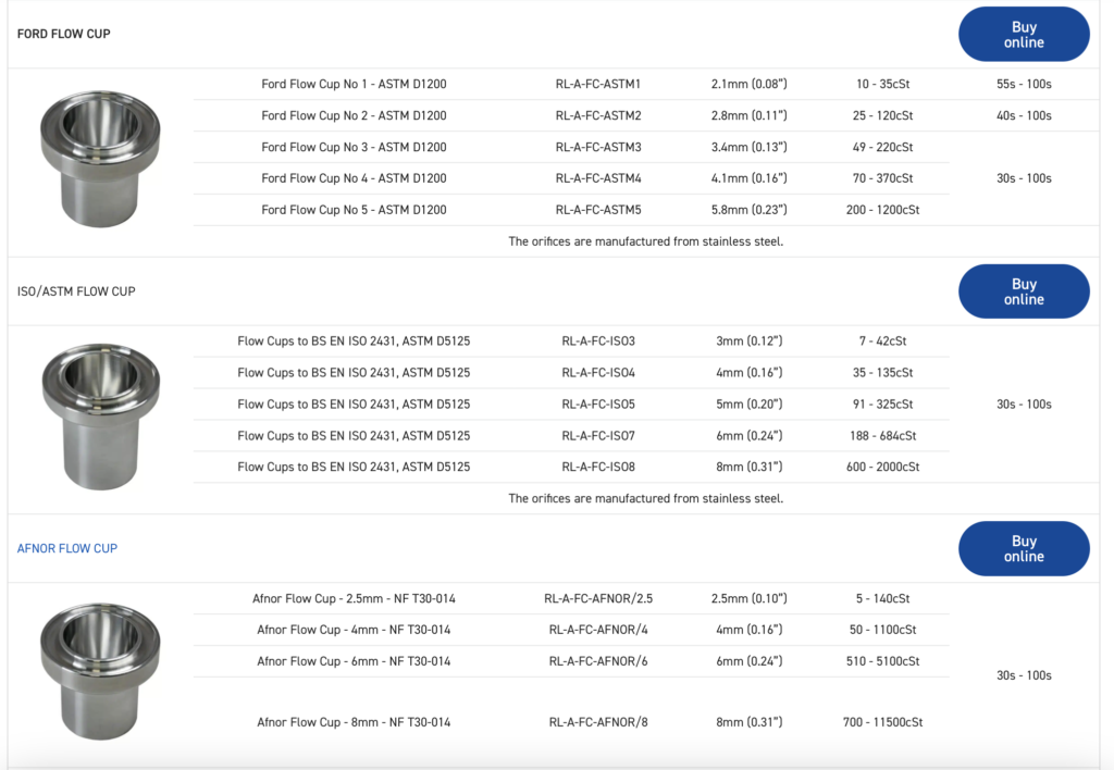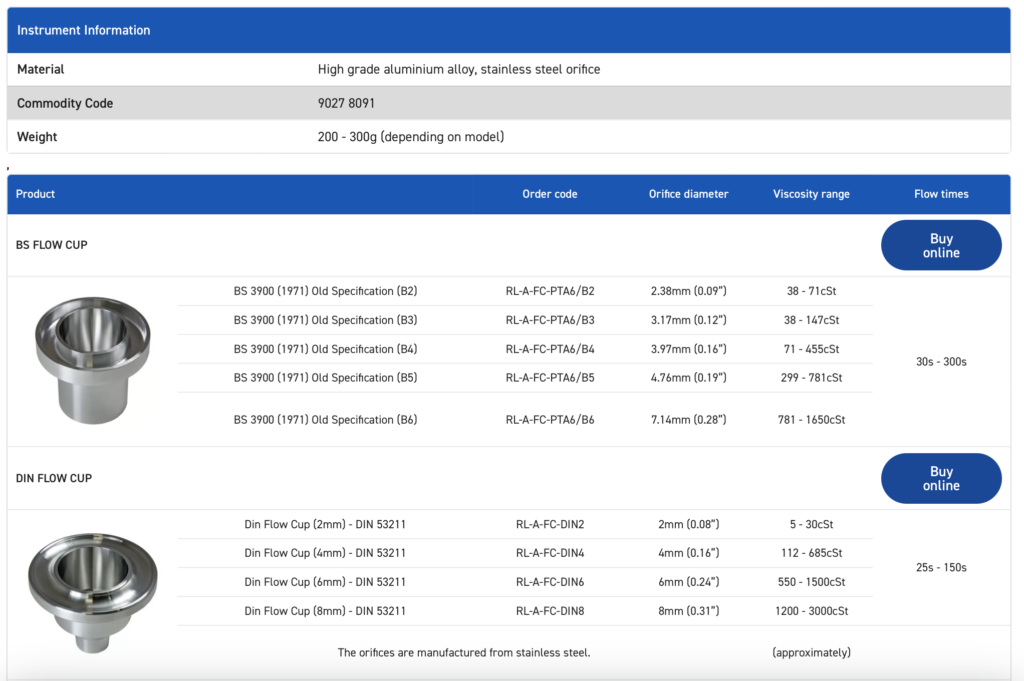 Manufactured from high grade aluminium alloy with stainless steel orifices (where indicated), the Rhopoint Flow Cups are available with a range of UKAS / ISO 17025 certified standard oils to confirm the flow cup is measuring within specification.